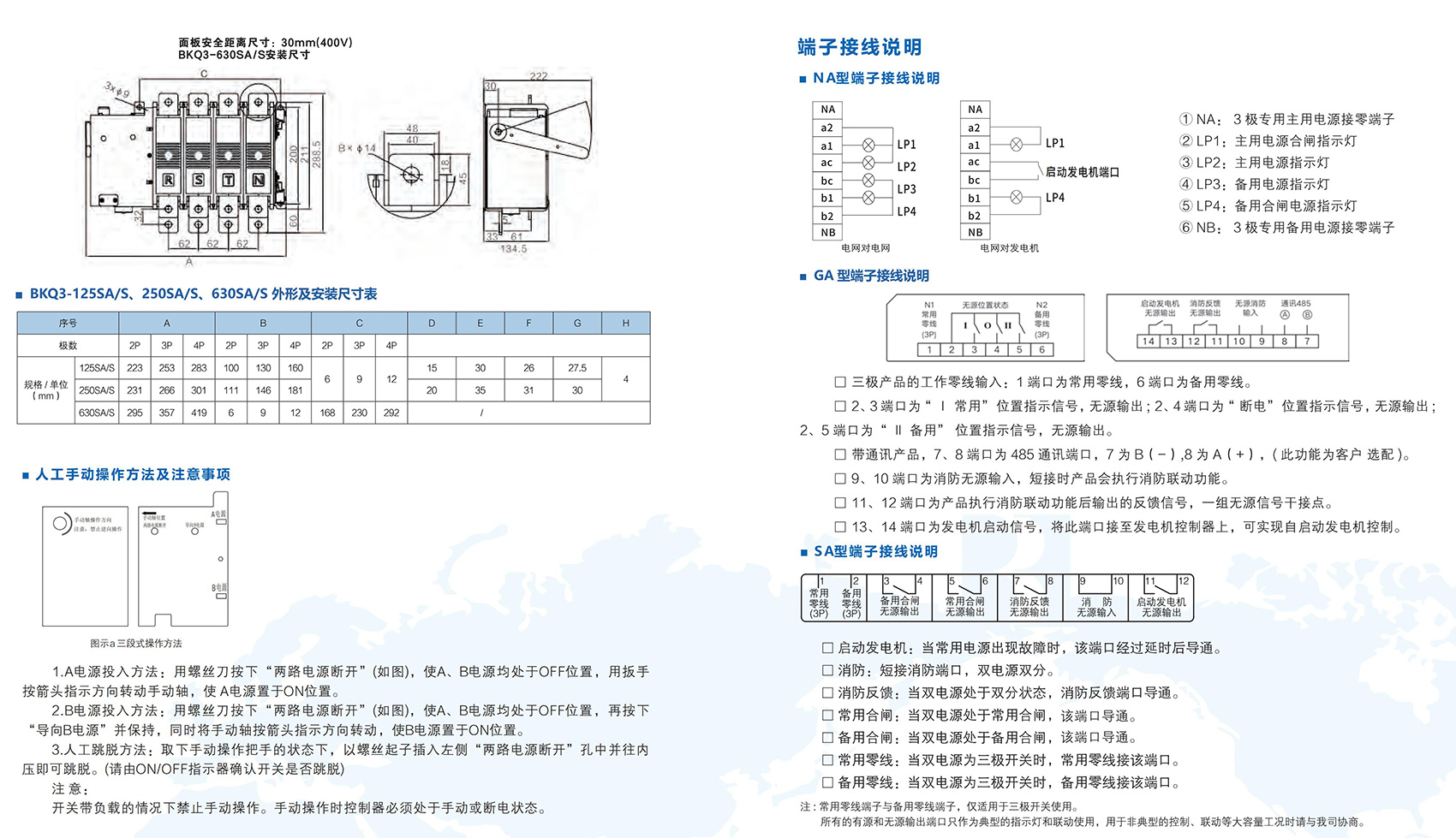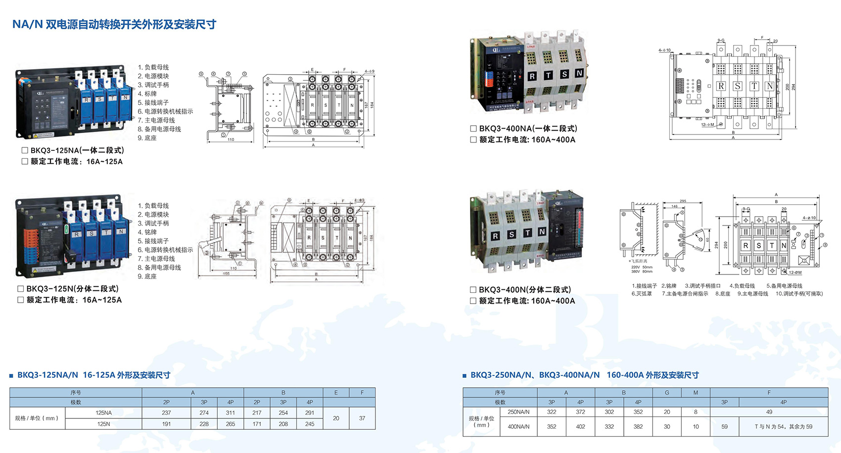 BKQ3-3200Q系列自動轉(zhuǎn)換開關(guān)電器適用于交流50/60Hz,額定工作電壓400V,額定電流800A至3200A的雙路配電系統(tǒng)中,產(chǎn)品由開關(guān)本體與轉(zhuǎn)換控制器兩部分組成,本體采用電磁線圈驅(qū)動,轉(zhuǎn)換速度快;轉(zhuǎn)換控制器具有對兩路三相電源的過電壓、欠電壓、缺相等故障檢測功能;同時帶有發(fā)電機(jī)組啟、停信號輸出。主要應(yīng)用于醫(yī)院、商場、銀行、化工、高層建筑、軍事設(shè)施、消防等不允許斷電的重要場所。產(chǎn)品符合GB/T 14048.11《低壓開關(guān)設(shè)備和控制設(shè)備 第 6-1 部分:多功能電器 轉(zhuǎn)換開關(guān)電器》。